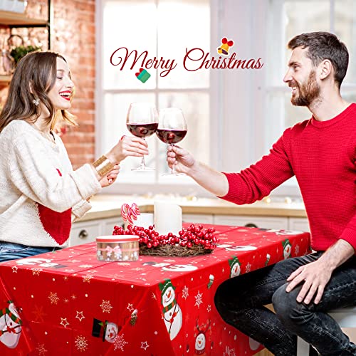 10 Pcs Christmas Plastic Tablecloth Disposable Christmas Party Tablecloth Decorations 54 x 108 Inch Snowflakes Waterproof Plastic Rectangular Table Cover for Merry Christmas Part
