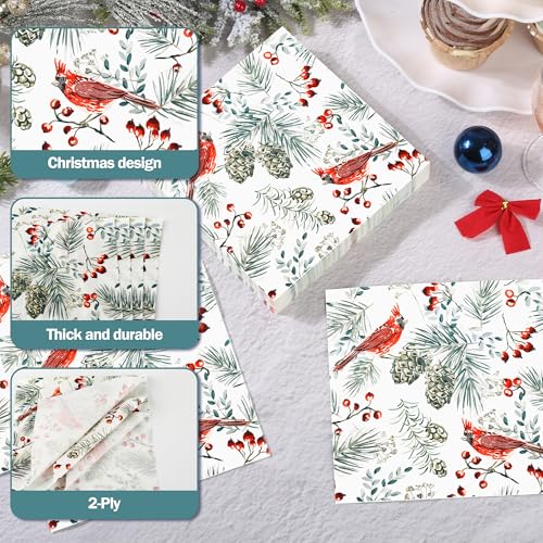 Each 2-ply cardinals napkin showcases fade-resistant prints that maintain their charm throughout the festive season