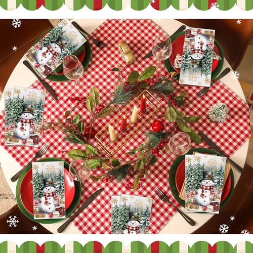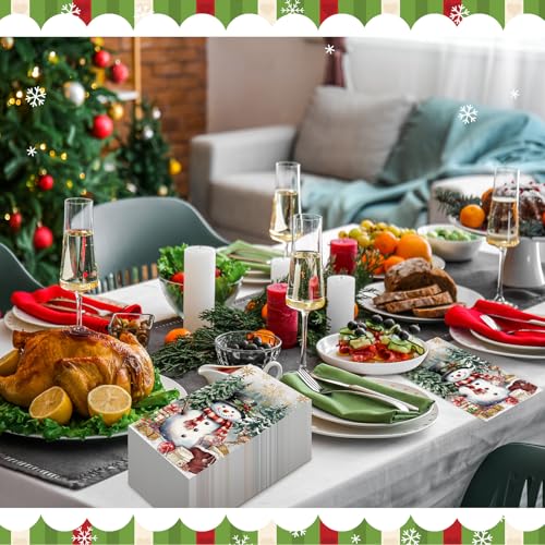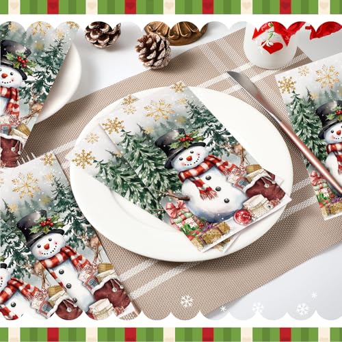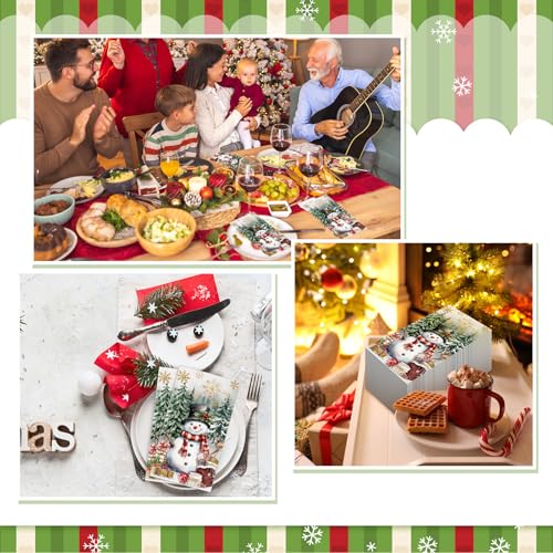 100 Pcs Christmas Guest Napkins 2 Ply Snowman Disposable Paper Napkins for Decoupage Snowflake Elk Xmas Tree Decorative Winter Christmas Cocktail Guest Hand Towel for Party Table Dinner Bathroom