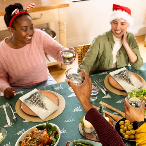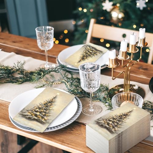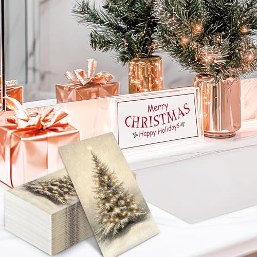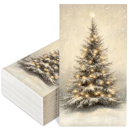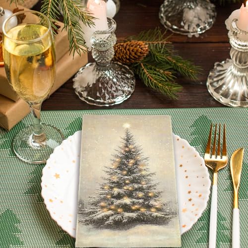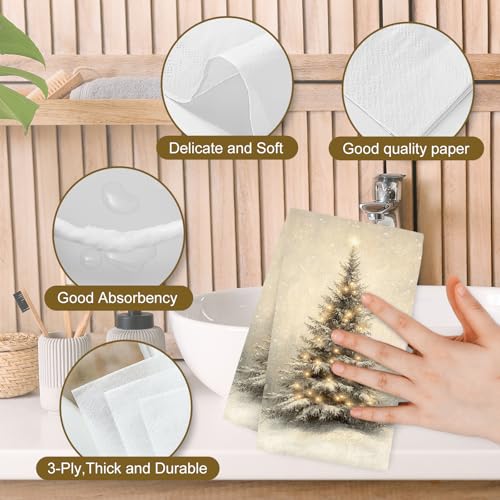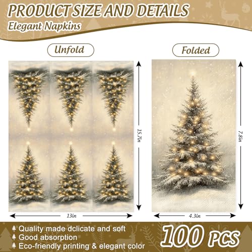 100 Pcs Christmas Guest Napkins Retro Snowflake Pine Disposable Napkin Xmas Winter Trees Dinner Paper Napkins for Holiday Party Bathroom Tableware Supplies