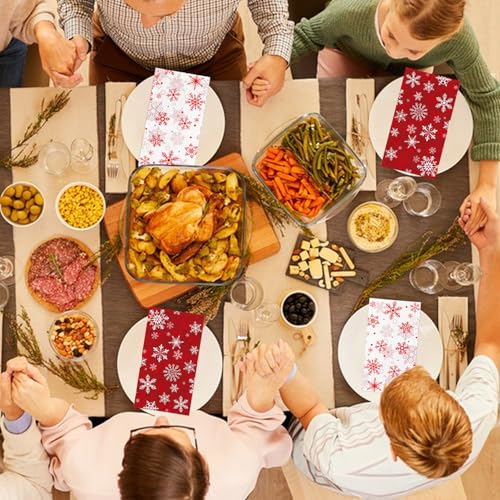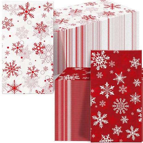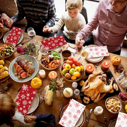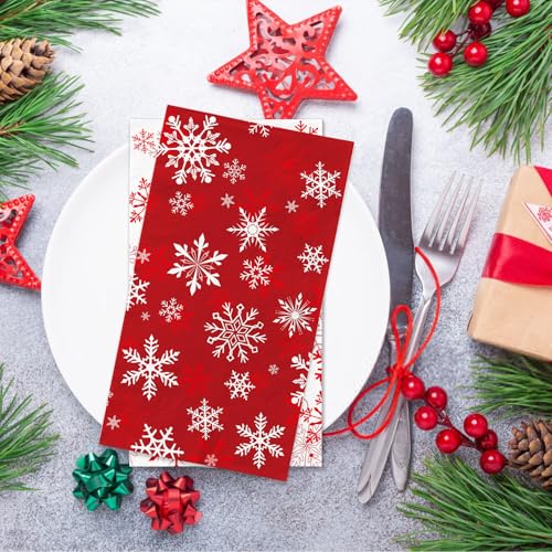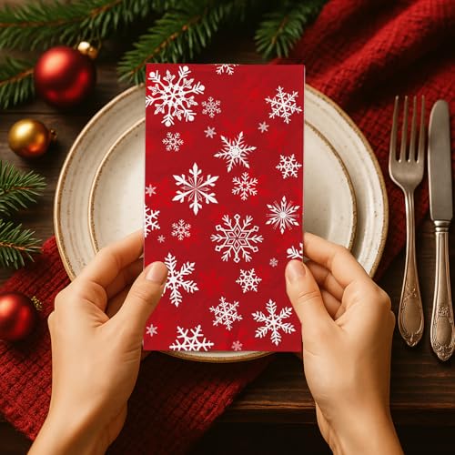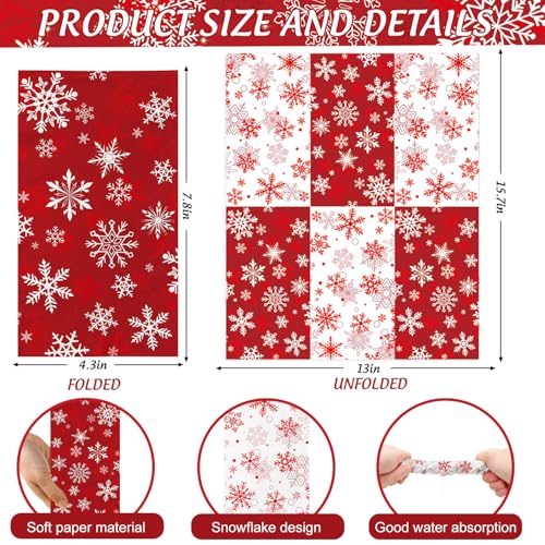 Classic Christmas Spirit: Our Christmas paper napkins embody the spirit of the season. Adorned with traditional Christmas elements like white and red snowflakes, the vibrant red-and-white color scheme and intricate patterns add a cheerful, wintry touch. These napkins elevate your festive mood and create a warm, inviting Christmas ambiance