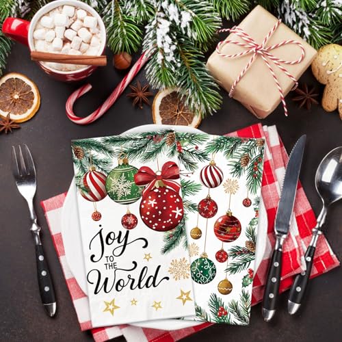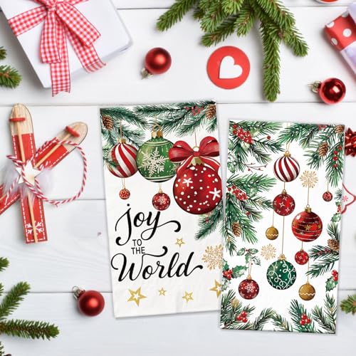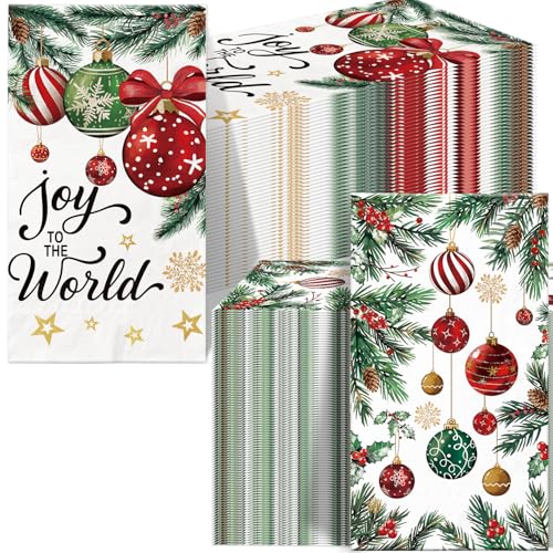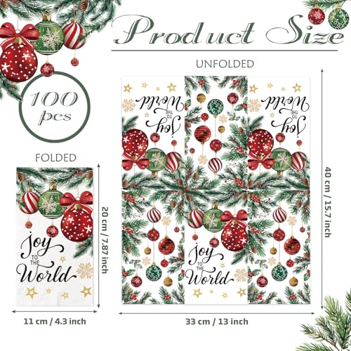 100 Pcs Christmas Napkins, Christmas Ornament Pine Cone Napkins for Dinner Cocktail Party Decorations, Xmas Guest Towels for Bathroom Kitchen