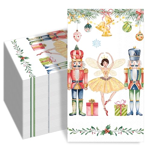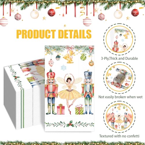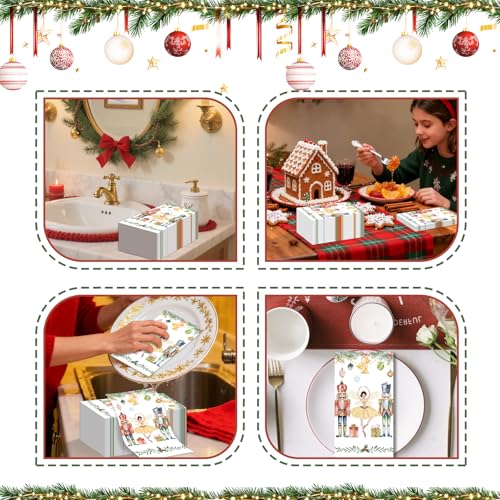 100 PCS Christmas Nutcracker Paper Napkins Disposable, Watercolor Nutcracker Napkins, Xmas Cocktail Napkins Winter Decorative Kitchen Bathroom Holiday Party Supplies