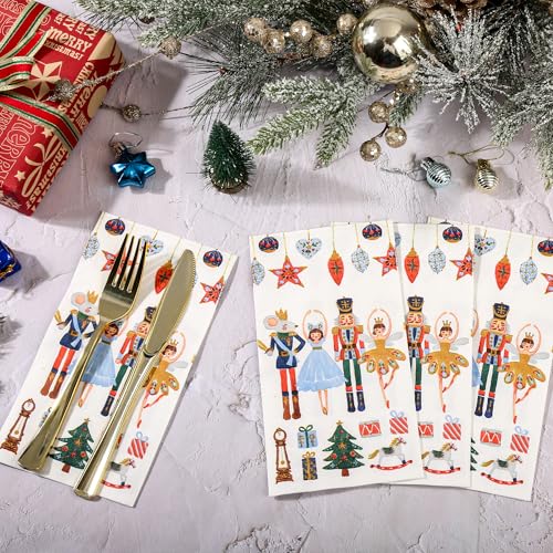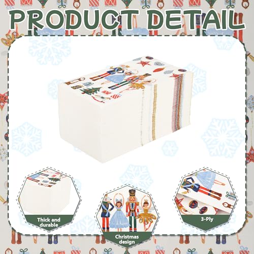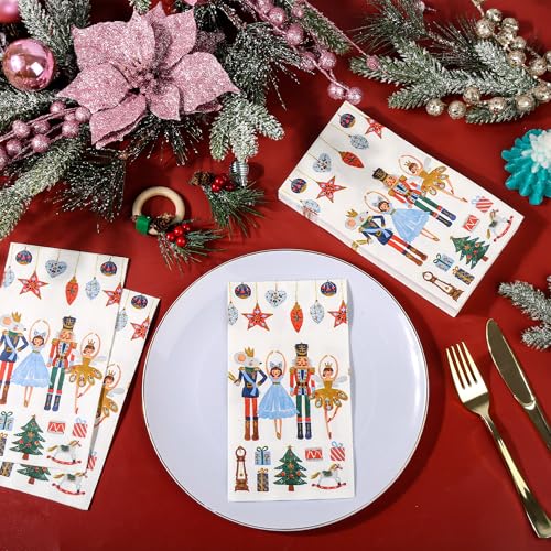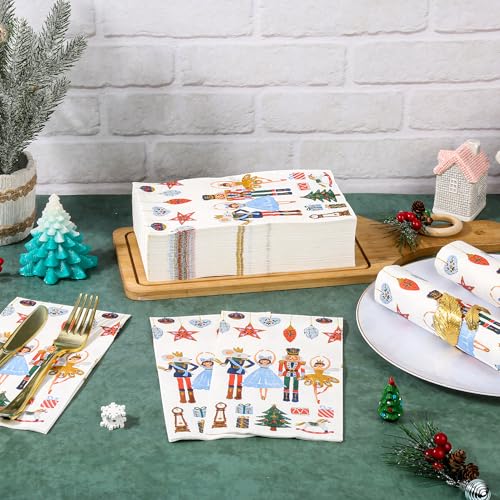 100ct Nutcracker Christmas Napkins – 3-Ply Watercolor Holiday Dinner Napkins for Xmas Party, Wedding, Buffet (15.7x13in)
