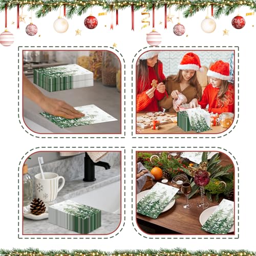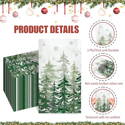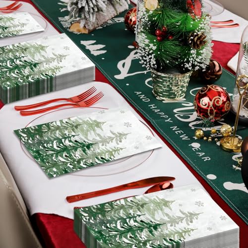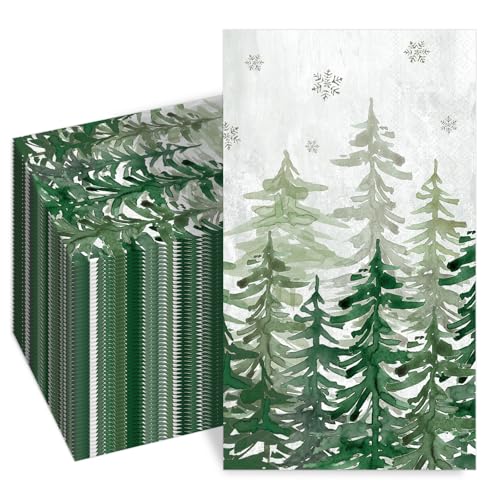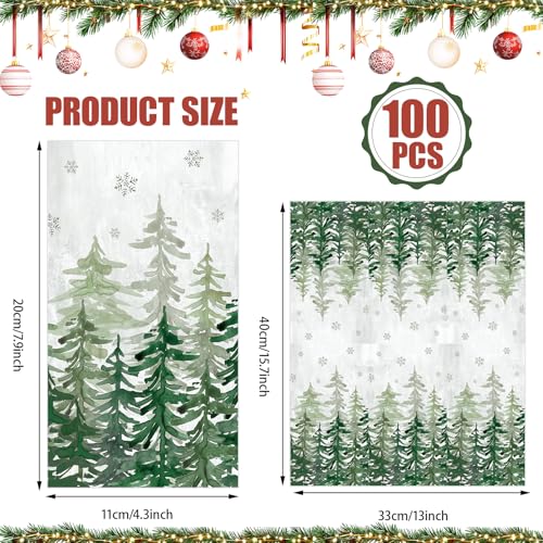100 Pcs Christmas Paper Napkins 3 Ply Pine Trees Snowflake Napkins Xmas Winter Dinner Hand Napkins for Kitchen Bathroom Holiday Party Supplies