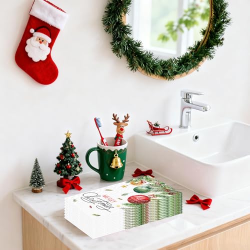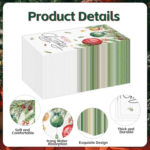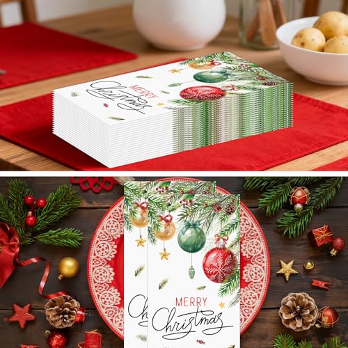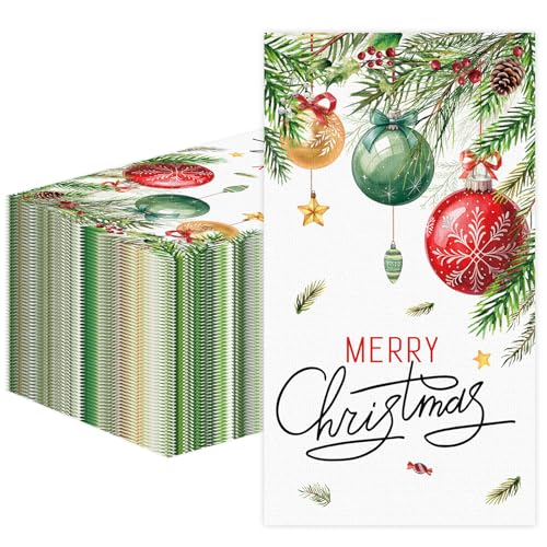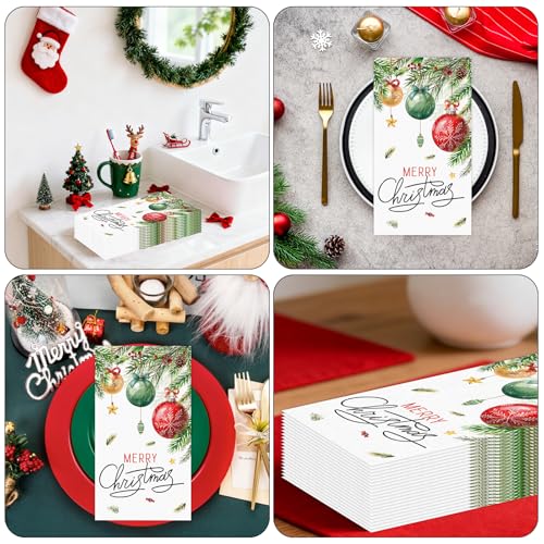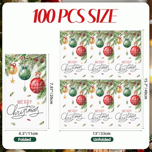 100 PCS Christmas Paper Napkins, Disposable Xmas Ornament Bathroom Guest Hand Towels Holiday Dinner Napkins Decorative for Winter Kitchen Birthday Wedding Decoration (Christmas)