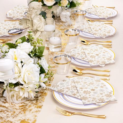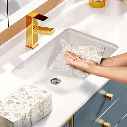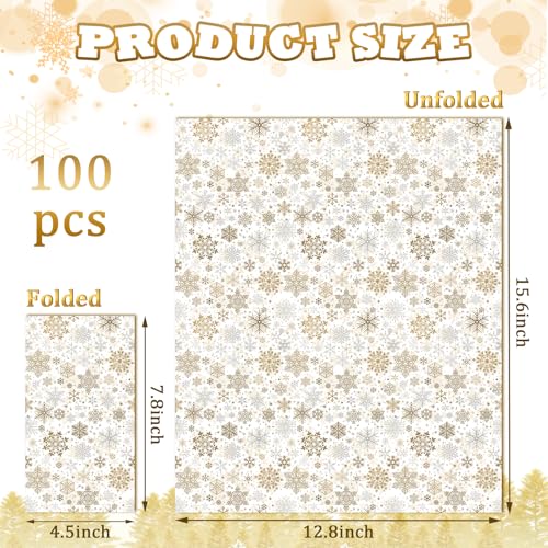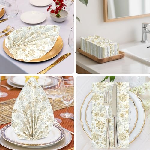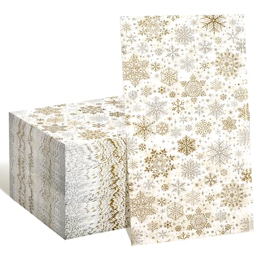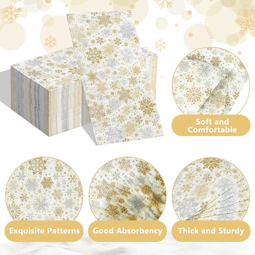 100 Pcs Christmas Paper Napkins, Snowflake Paper Napkins Party Disposable Guest Napkins Decorative Paper Guest for for Winter Holiday Xmas Decorative Party Supplies(Gold Snowflake)