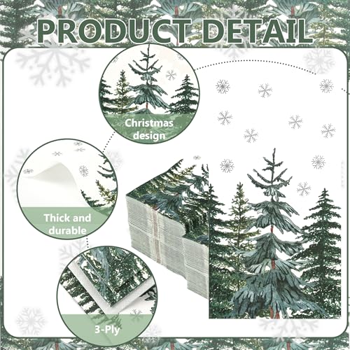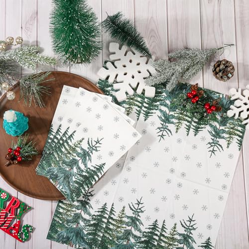 Elevate your holiday decor with artistically designed disposable napkins showcasing delicate pine trees and snowflakes patterns