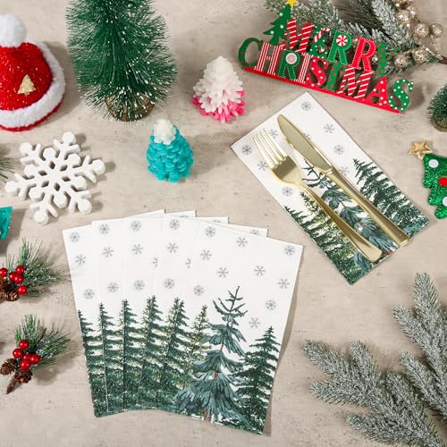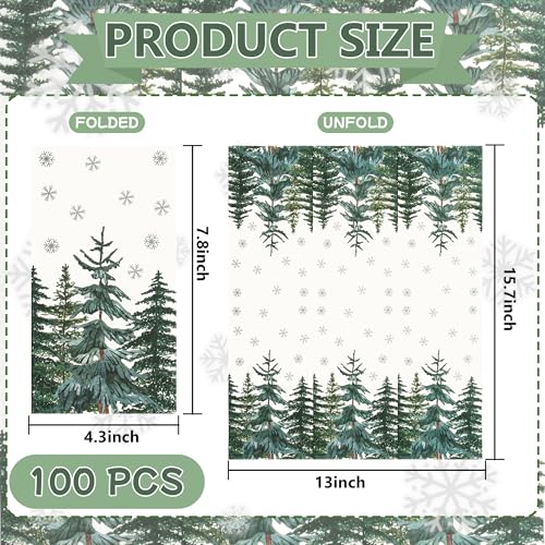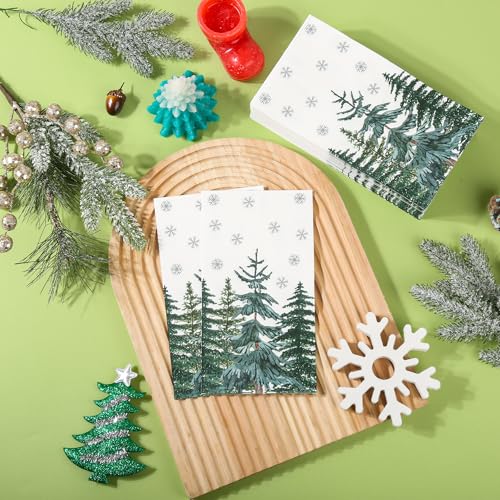 Festive Watercolor Design: 100 premium napkins featuring elegant pine trees and snowflakes patterns, perfect for Christmas tablescapes and winter party decor