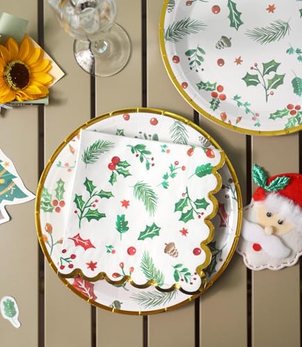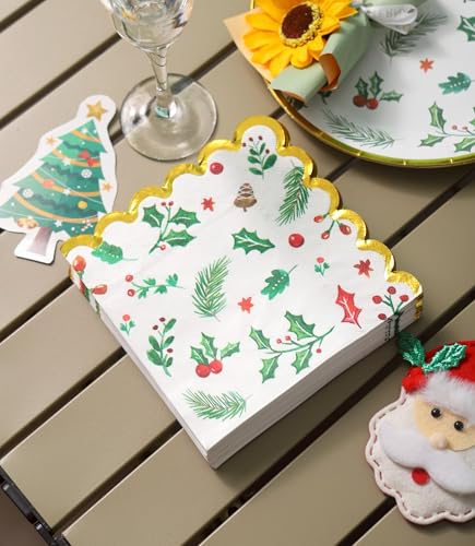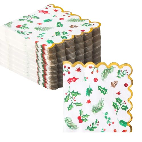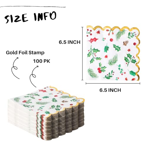 100 PK Christmas Large Dinner Size Napkins Paper – 3-ply Christmas Guest Napkins 6.5×6.5 Inch Disposable Party Napkins for Christimas Decorations Table Décor Party Supplies