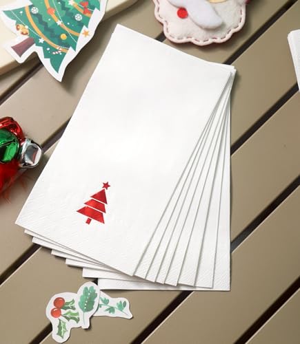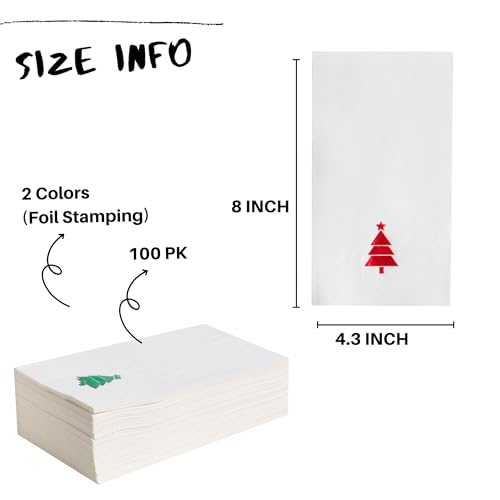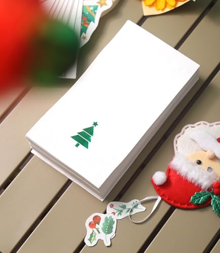100 PK Christmas Paper Guest Napkins, Bulk Disposable Dinner Napkins Guest Towels Disposable Bathroom Christmas Tree Napkins Guest Hand Towel for Xmas Party Supplies