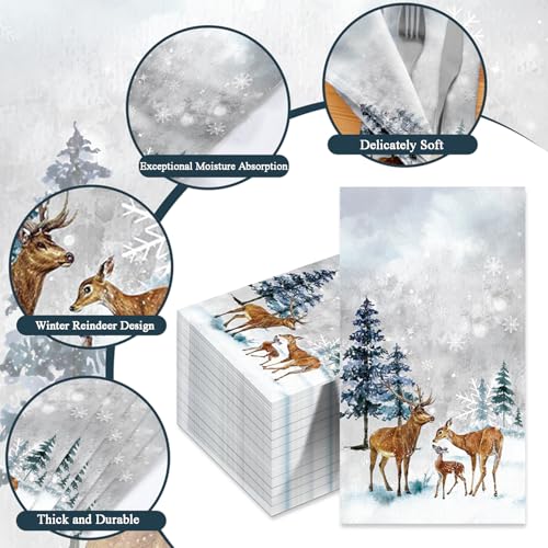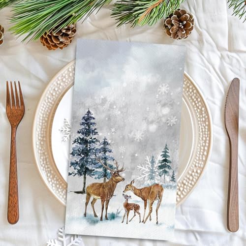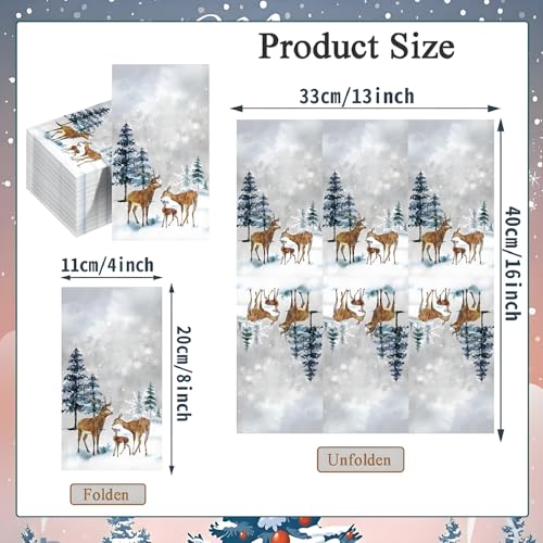 PREMIUM QUALITY ASSURANCE: Crafted from soft, durable paper, these Christmas-themed napkins resist tearing while offering superior absorbency. Whether wiping hands or decorating tables, the Christmas guest napkins deliver reliability without compromising on festive flair