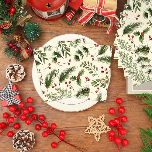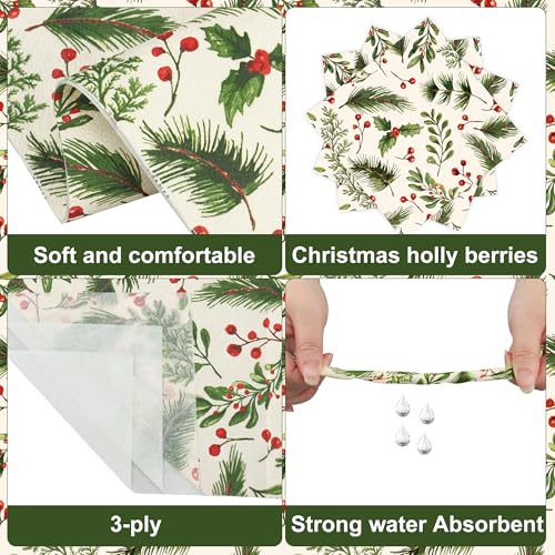 High quality: Our Christmas holly berries and pine paper napkins are meticulously crafted from soft thick paper, absorbent and skin-friendly, providing your guests with ultimate comfort and luxury. Triple folding ensures sufficient sturdiness and resistance to tearing.