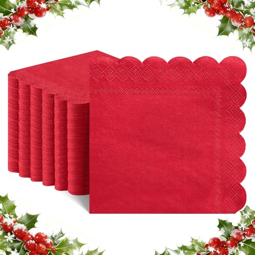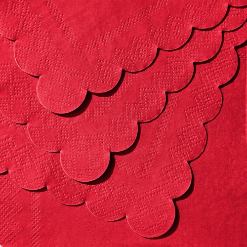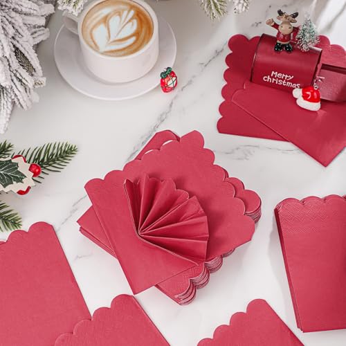 120 Pcs Red Napkins, Scalloped Christmas Napkins Red Cocktail Napkin Beverage Dessert Napkin for Christmas Birthday Wedding Baby Shower, 5 x 5 Inch