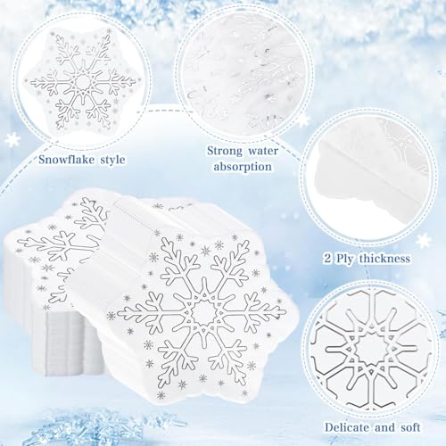 Snowflake Napkins Material: Snowflake cocktail napkins are made of 2-ply paper material, soft, comfortable and absorbent. Measuring 5.5 x 5.5 inches, ideal size for cocktails and beverages