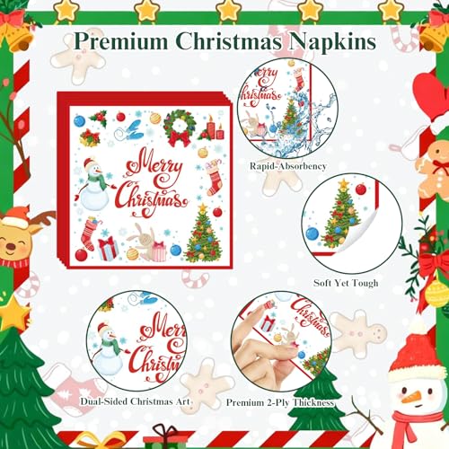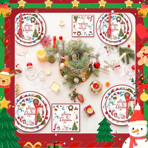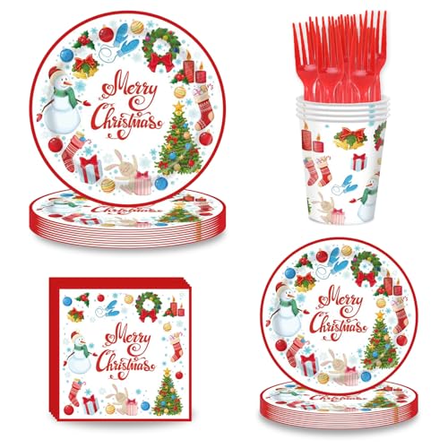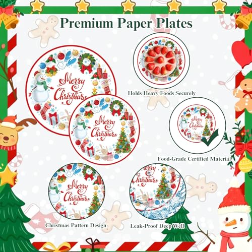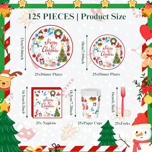 Package Contents: Each christmas tableware set includes 25 9-inch Christmas tree plates, 25 7-inch « Merry Christmas » dessert plates, 25 6.5-inch festive napkins, and 25 forks. It can serve up to 25 guests, fulfilling needs for christmas party supplies and christmas plates set