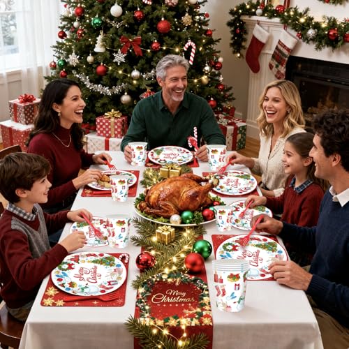 Wide Uses: Ideal for Christmas-themed parties, birthdays, photo backdrops, winter parties, family get-togethers, picnics, camping trips, barbecues, holiday celebrations, and office events. Fits for christmas paper plates and christmas party supplies