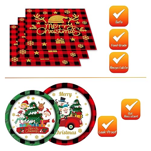 PERFECT CHRISTMAS PARTY DECORATIONS: The Christmas dinnerware set are the ideal choice to add a eye-catching atmosphere to Christmas decorations. Our Merry Christmas party supplies can perfectly match your other Xmas themed party supplies and Christmas table decorations. The adult and children will be interested in the Christmas disposable tableware set, which can leave your family and friends fond memories at Christmas celebrations.