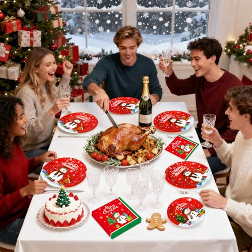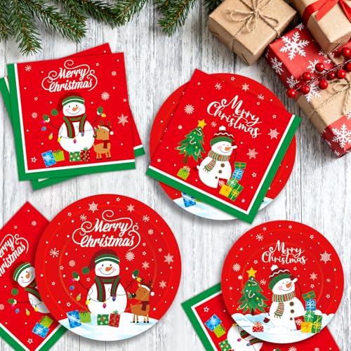 Are you looking for a cute Merry Christmas plates and napkins set for 2025 Christmas snowman party decorations?