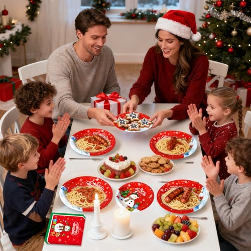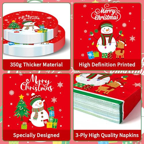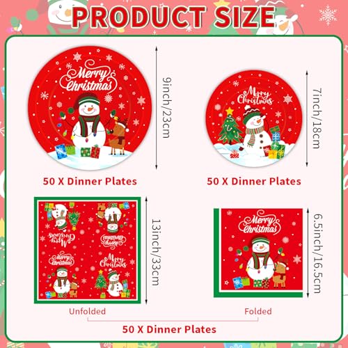 【150 PCS Christmas Party Supplies】- Host your Christmas themed party with our Xmas tableware set! You will receive a total of 150 pieces of Christmas party decorations set, which include 50 pcs 7 inch small Christmas plates, 50 pcs 9 inch large Christmas plates and 50 pcs 6.5 inch Christmas paper napkins.This quantity is enough to meet your needs for a banquet of 50 guests. Share the Xmas party decorations with guests at your 2025 Christmas snowman theme party or any family gathering