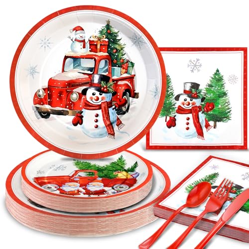 【Disposable and Recyclable】 – Christmas plates and napkins party supplies are made of 100% food grade paper and are a disposable Christmas dinnerware set, no-toxic. You can simply throw them away when cleaning after the winter holiday party. You can enjoy more time with friends and family.