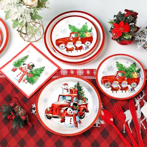 【Wide Applications】- These Christmas party plates and napkins sets are suitable for Christmas party supplies, red christmas decorations, Christmas birthday party, Christmas baby shower, Christmas table decorations, winter holiday party, Christmas dinner.