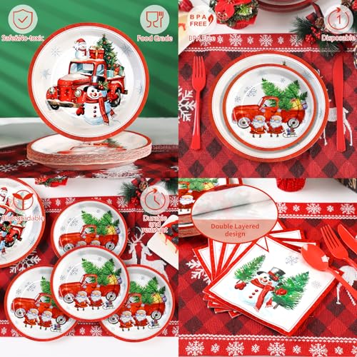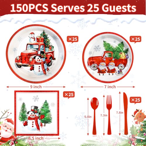 150Pcs Christmas Paper Plates and Napkins Sets, Disposable Christmas Plates and Napkins, Serve 25 Guests, Santa Winter Holiday Party