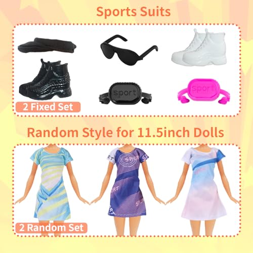👚【Vêtements de poupée de sport à la mode】: Vous recevrez 18 pièces d’ensemble de déguisements adaptés aux poupées de 11,5 pouces, dont 1 sweat-shirt à capuche + 1 casquette de baseball (noir) + 2 paires de baskets dans femmes (noir et blanc) + 2 ensembles de robes de tennis + 2 ensembles de robes quotidiennes + 1 gilet de sport et décontracté + 3 pantalons de sport + 1 lunettes de soleil + 2 hauts de course + 2 sacs banane + 1 sweat-shirt (les vêtements et accessoires sont de styles aléatoires, les poupées ne sont pas incluses)