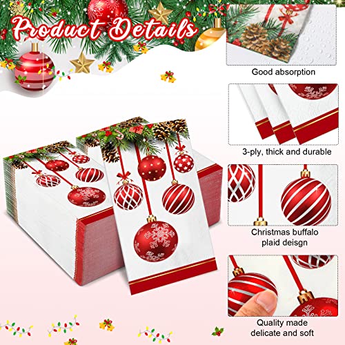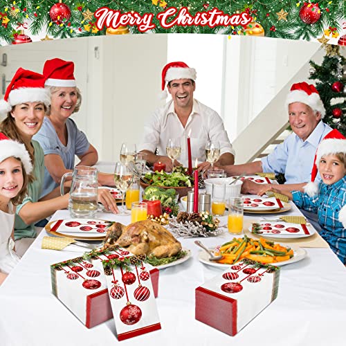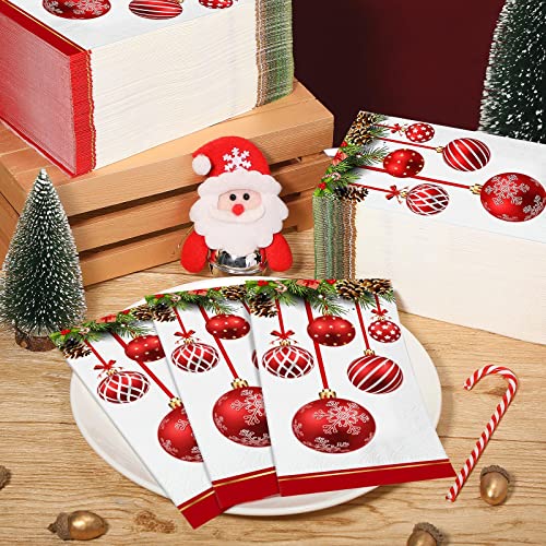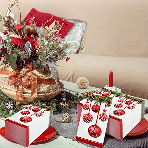 200 Pcs Christmas Napkins Disposable Paper Xmas Disposable Guest Towels Merry Christmas Dinner Napkins Design for Winter Holiday Party Supplies Tableware Decorations (Baubles Style)