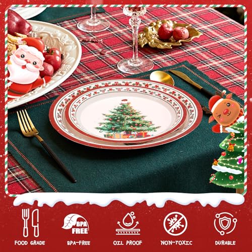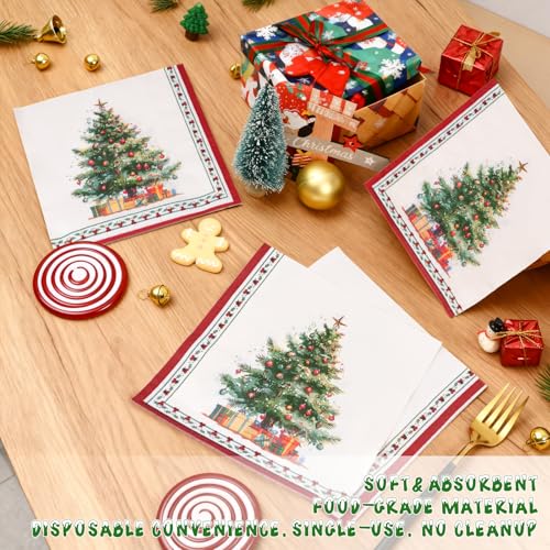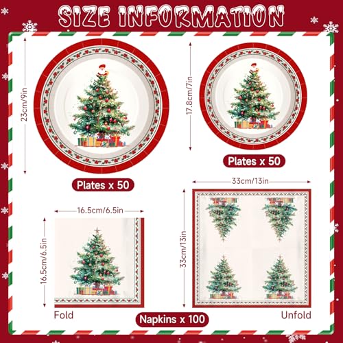 200Pcs Christmas Paper Plates and Napkins, Christmas Tree Plates and Napkins, Xmas Party Decorations Supplies Disposable Holiday Dinnerware Set, Serves 50