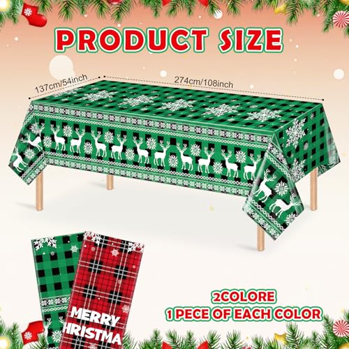 Complete Holiday Table Set – This set includes 2 festive christmas tablecloth designs, each measuring 54×108 inches, making them perfect christmas tablecloth rectangle options for covering most dining or buffet tables with a bright seasonal look.