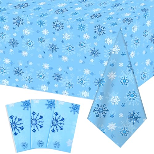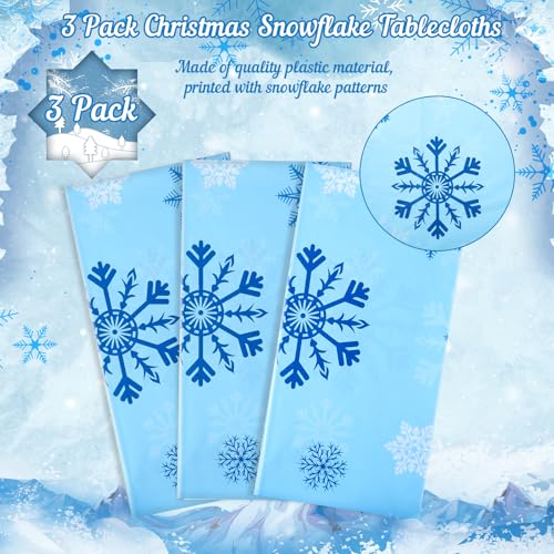 3 Pack Christmas Snowflake Plastic Tablecloth, 54 x 108Inch Blue and White Snowflake Table Cloth Disposable Waterproof Holiday Tablecloth for Christmas Winter Holiday New Year Party Supplies Decor