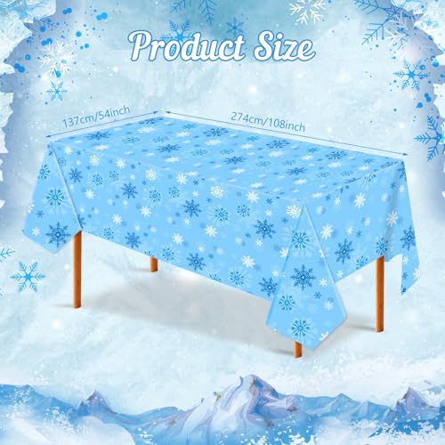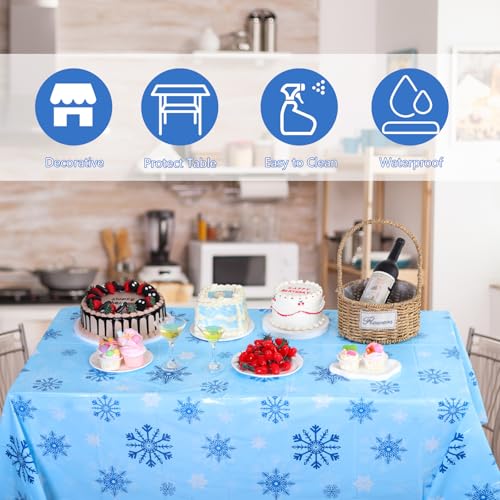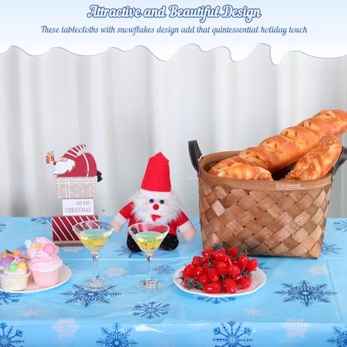 Package Included: You will receive 3 pcs Christmas plastic tablecloths printed with white and silver snowflake patterns on blue backdrop, which sends out a strong festive vibe, decorating for Christmas or winter celebrations