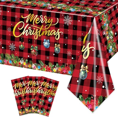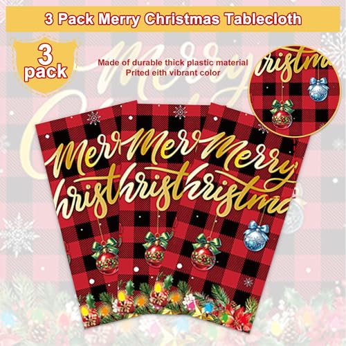 3 Pcs Covers Christmas Disposable Tablecloths,for Rectangle Tables 54 x 108 Inch, Cute Christmas Tree Decorations for Party Supplies, Home, Indoor, Outdoor