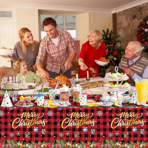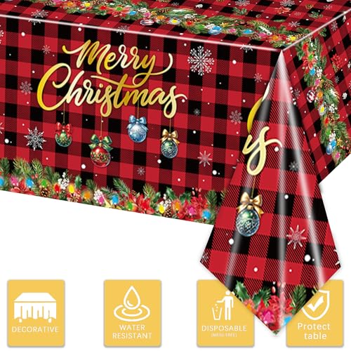 【Easy to Clean】 The Covers Christmas Tablecloths themed party supplies surface of the tablecloth has a good waterproof and oil-proof effect, which can effectively prevent food and beverage spills from making the table dirty, easy to clean, just pack up and throw away after the party