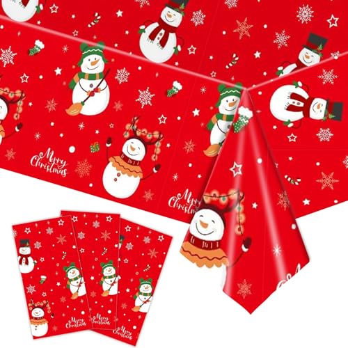 3 Pcs Christmas Tablecloth, Snowman Christmas Table Cover, Disposable Plastic Rectangle Xmas Snowman Party Table Cloths for Christma Tables Decorations and Party Supplies, 54 x 108 Inch