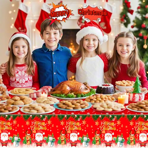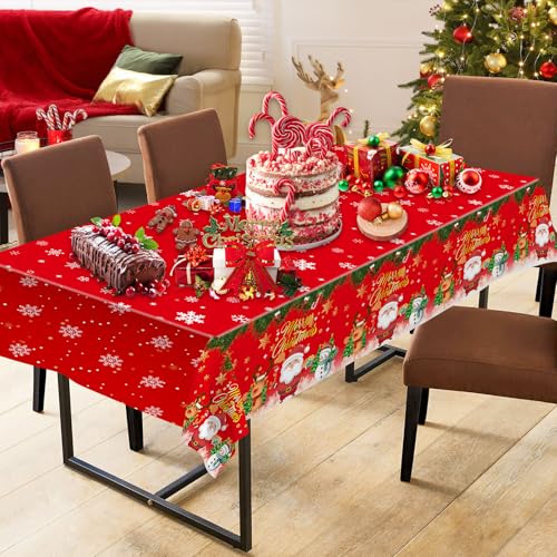 【Perfect Size for Various Rectangle Tables】- This christmas party tablecloth measures about 54 x 108 inch/4.5 x 9 ft, which is big enough to cover many square or rectangular tables. Large size design, you can cut these christmas plastic tablecloths according to your needs, even can be cut to as a winter christmas table runner or backdrop.There in no doubt that it’s a necessary christmas party favors.