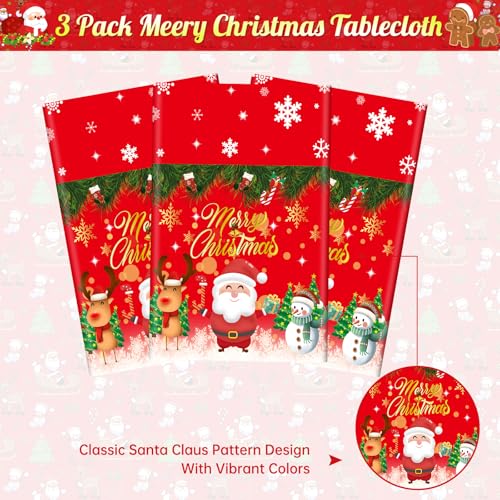 【Essential Winter Christmas Tablecloths】- You will get 3 Pieces Merry Christmas table cloths, which can meet your different needs. You can use these cute Christmas themed table covers to decorate the tables, add a more active and cheerful atmosphere to your Christmas Party, making your 2025 Winter Christmas holiday moment more happy and memorable.