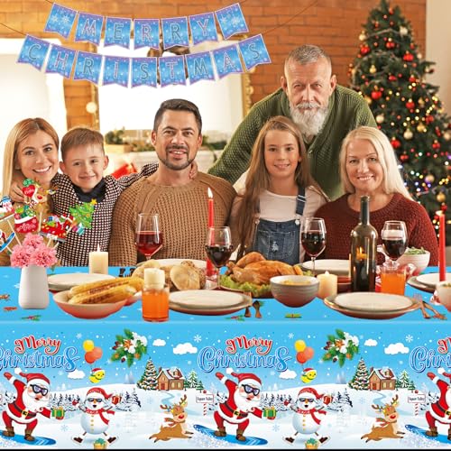 【Suitable for Multiple Occasions】- You can use these blue and white christmas table cloths in various places, such as winter holiday parties, birthday party, home, dining room, patio, restaurant, hotel, etc, to add a strong christmas festive atmosphere, but also as ordinary tablecloths for daily use, can save you a lot of cleaning time. Just enjoy the happy time! Besides, these Merry Christmas tablecloths also can be decorations, hang them on doors or wall, even cut to as a table runner according to your needs.