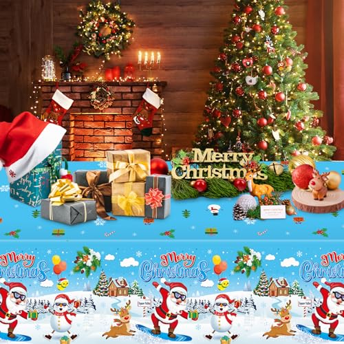 【Premium Quality Christmas Table Cover】- Our Winter Christmas disposable plastic tablecloth is made from carefully selected, quality-tested PVC material, which is high-quality, odourless, non-toxic, waterproof and smooth, not easy to break, 100% SAFE! Besides, if these Christmas party table covers get dirty, they can be easily cleaned with cloth or paper! This christmas plastic table cloth can serve you for long time, providing you a good using experience.