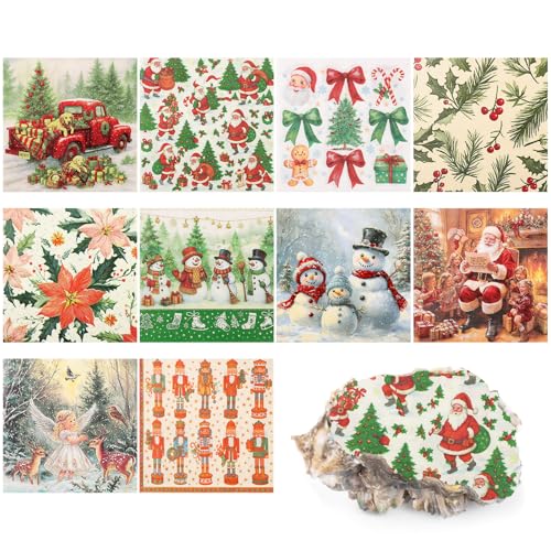 30 Pack Christmas Decoupage Napkins, 10 Styles Assorted Retro Christmas Paper Santa Snowman Decorative Decoupage Napkin for DIY Crafting Holiday Xmas Dinner Table Party Decor,13×13Inch