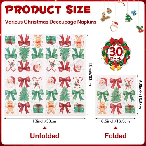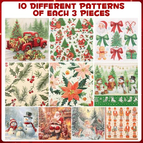 Package Includes: You will receive 30 Christmas decoupage napkins, featuring 10 different designs (3 pieces of each style), offering a variety of styles to meet your everyday decorating needs.