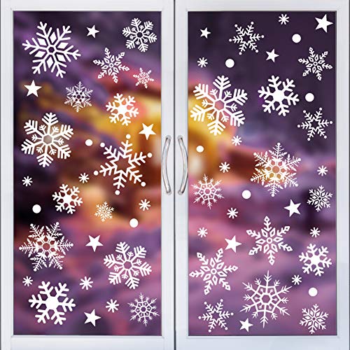 Différents styles de Flocons Neige – Une genre de styles et de dimensions autocollants de Noël flocon de neige en 10 feuilles, une excellente décoration de Noël à cause la maison, le bureau et le magasin.