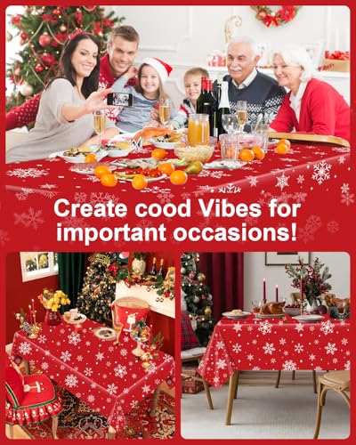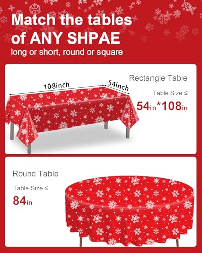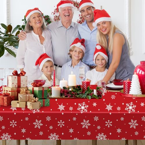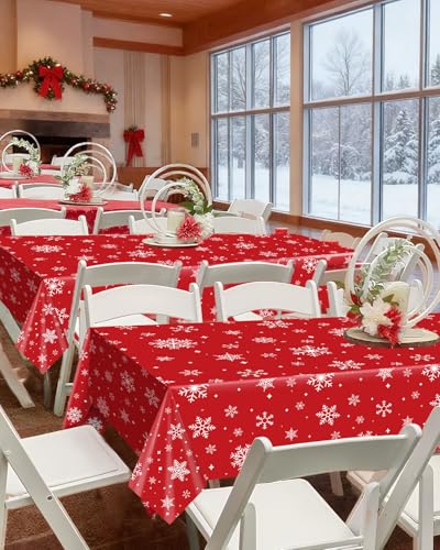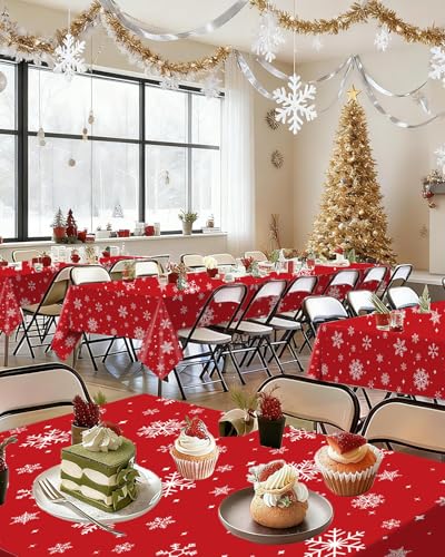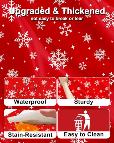 Pretty Design: The christmas table cloths rectangular features a red color adorned with various snowflakes in different shapes to create a sense of depth. This exquisite combination is perfect for Christmas holiday party decorations.