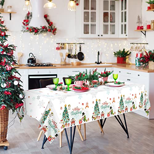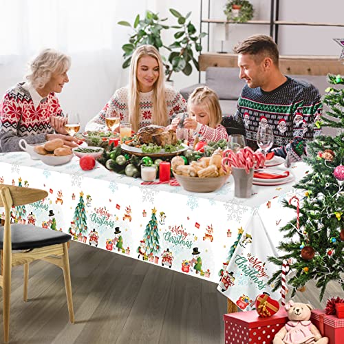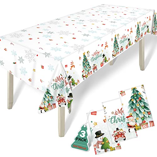 3pcs Christmas Tablecloth Rectangle Disposable Table Cover 54 X 108in Waterproof Winter Snowman Snowflake Xmas Tablecloth for Christmas Theme Birthday Party, Picnic Christmas Holiday Party Decoration
