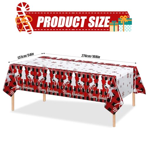 PERFECT SIZE: You will receive 3 packs Christmas party tablecloths, the size of the tablecloth is about 54 X 108inch, Christmas table cloths has the large enough size to fit a wide variety of tables.