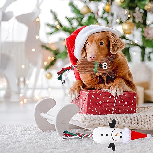 Jouet de Noël en peluche à cause chien, 3Pcs Jouet à mâcher interactif Jouet de Noël en peluche à cause chien avec corde à nœuds Bonhomme de neige, Officiant Noël, Elan Jouet d’entraînement à cause chien Jouet de Noël en coton doux Jouet de Noël à cause chien de petite et moyenne taille, chiot