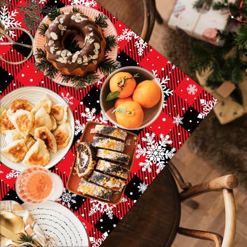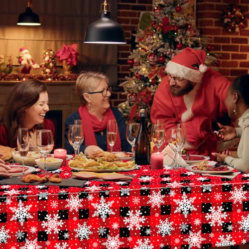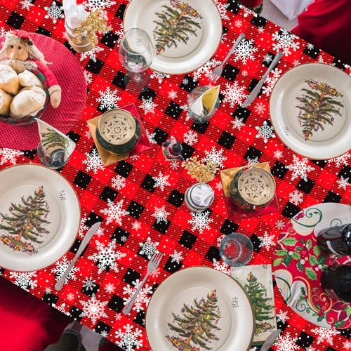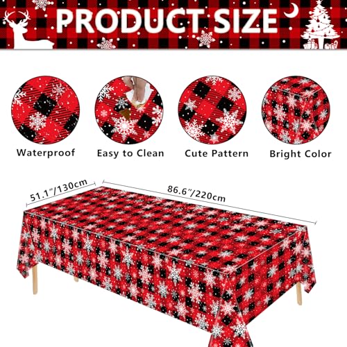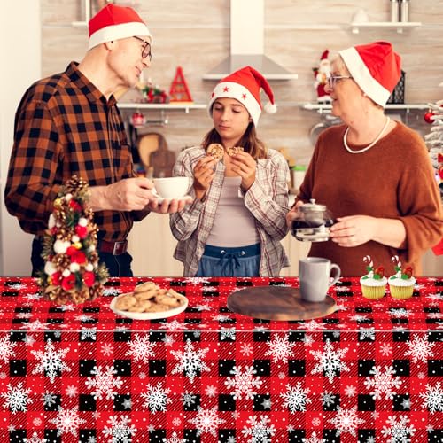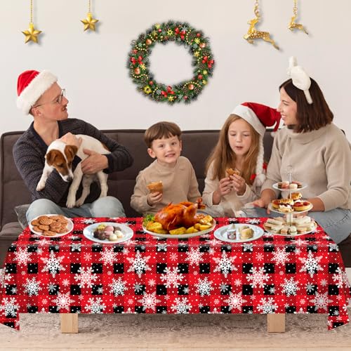 Package includes: you will receive 4 pack Xmas plaid tablecloths, Christmas checkered snowflake tablecloth measures 51 x 86 inches/ 130 x 220 cm, which fits most dining tables and is larger than most other tablecloths.