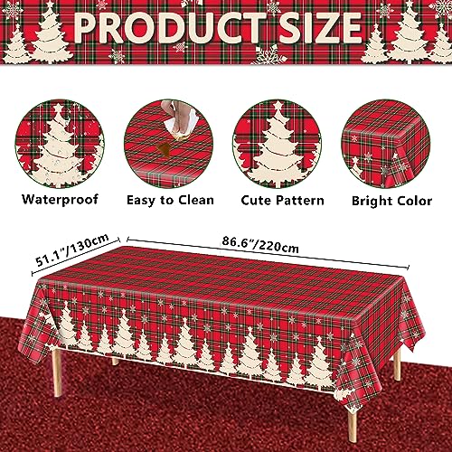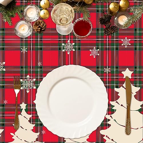 🎅Eye Catching Design: Christmas Red and Green checkered tablecloths are printed with plaid, white snowflakes, several white Christmas tree, bright and colorful collocation and interesting. Will bring your party vitality and activities, create a Christmas party atmosphere, also ideal for daily use.