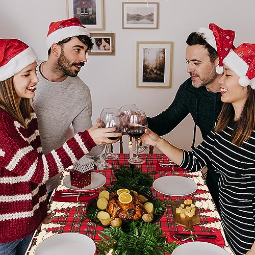 🎅Christmas Table Covers: 4 Pack Christmas Tablecloths measured 51 x 86inch (130 x 220cm), perfect for multiple tables and set ups. Christmas Tree and snowflakes designs, ideal for Christmas party decoration, Christmas themed party’s table cover. 4 Pieces of Xmas buffalo tablecloths are enough to meet your daily usages and replacements, creating a kind of holiday atmosphere, vibrant and convenient.